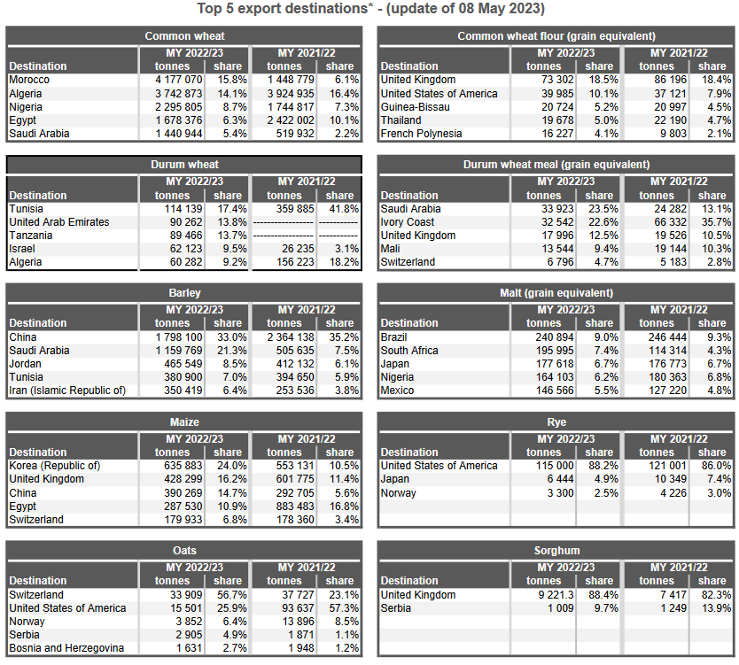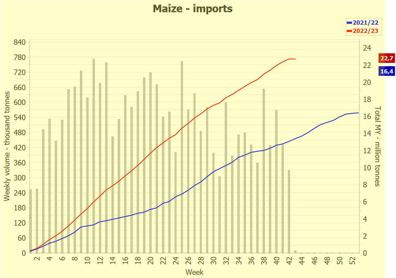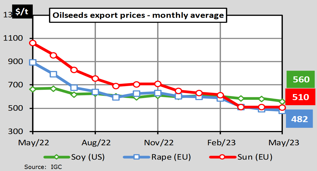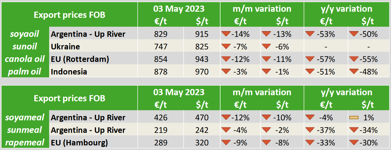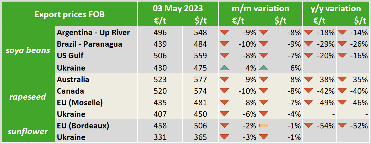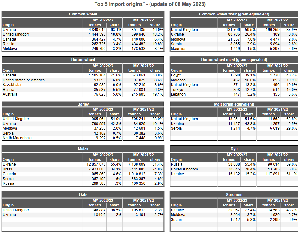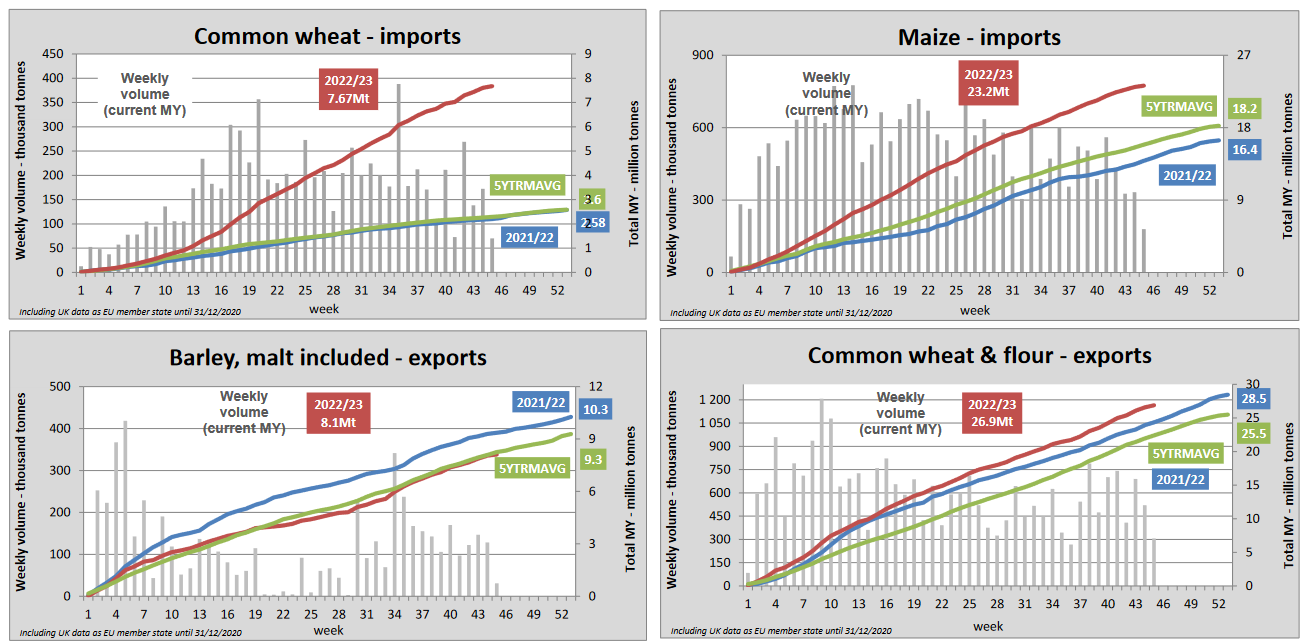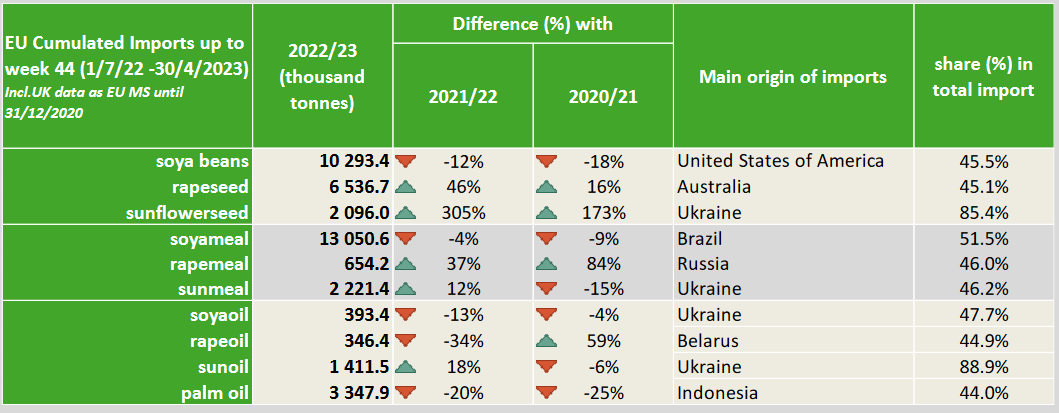 ЕС. Импорт - экспорт зерновых, масличных, растительного масла, шрота. Оперативные данные на 07.05.2023