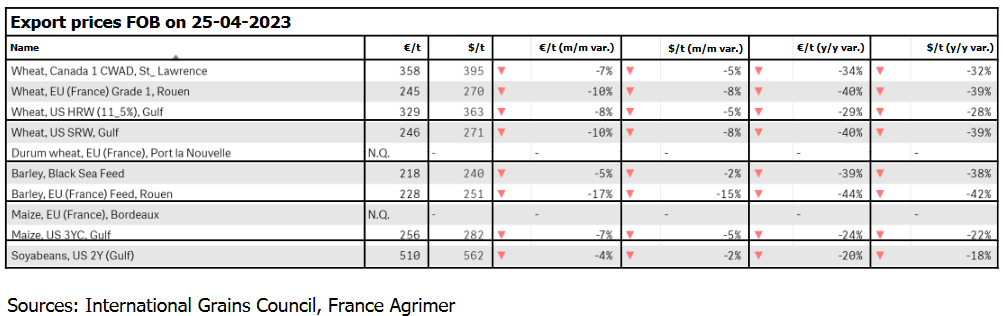 04.05.23 ЕС. Импорт - экспорт зерновых, масличных, растительного масла, шрота. Оперативные данные на 30.04.2023