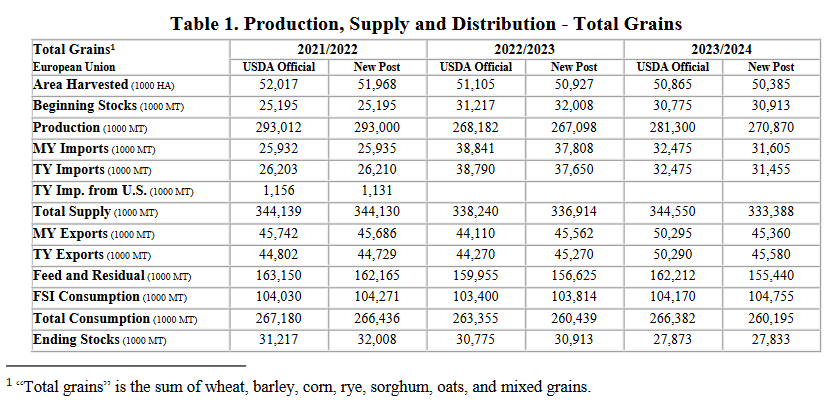 Погодные условия, варьирующиеся от чрезмерной жары до более низких, чем средние температуры, и от засухи до чрезмерной влажности, ограничивают ожидания производства озимых зерновых в ЕС в 2023/24 МГ. Июльская жара также вызвала опасения по поводу перспектив урожая кукурузы в ЕС. Ожидается, что ухудшение внутреннего урожая не позволит расширить экспорт зерна из ЕС и поддержит устойчивый импорт, сообщает oilworld.ru со ссылкой на USDA. Приостановка Черноморской зерновой инициативы повысила волатильность рынка. Если сбои в торговле продлятся до осени, необходимо будет найти альтернативные каналы для экспорта урожая зерновых из Украины. В этом случае торговля внутри ЕС станет особенно важной, и экспортеры зерна из ЕС смогут восстановить конкурентоспособность на рынках третьих стран.