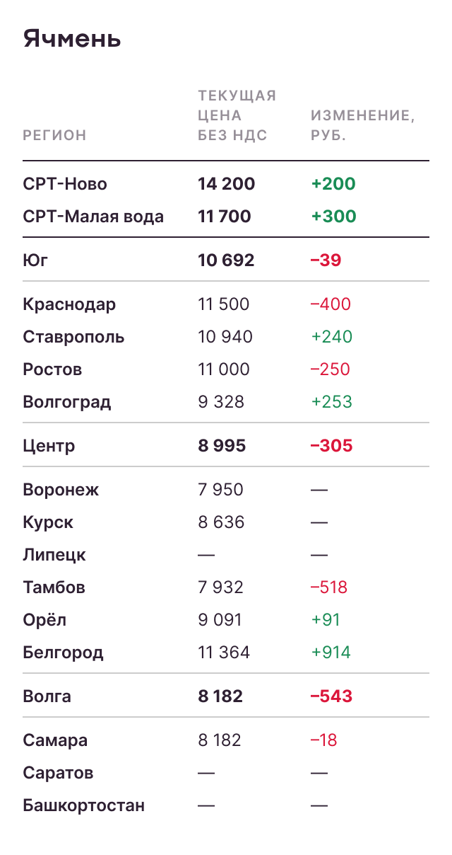 Рынок ячменя сейчас совпадает по тенденциям с рынком пшеницы: цены выровнялись относительно экспортного паритета. Высокий спрос со стороны импортеров позволил оттолкнуться от минимумов июня-июля ($170 за тонну), однако спред в сравнении с ячменем европейского или австралийского происхождения все равно существенный, что и объясняет высокий интерес к российскому предложению. В перспективе месяца-полутора мы можем увидеть постепенный рост цен FOB на российский ячмень и снижение дисконта по отношению к ячменю иного происхождения.