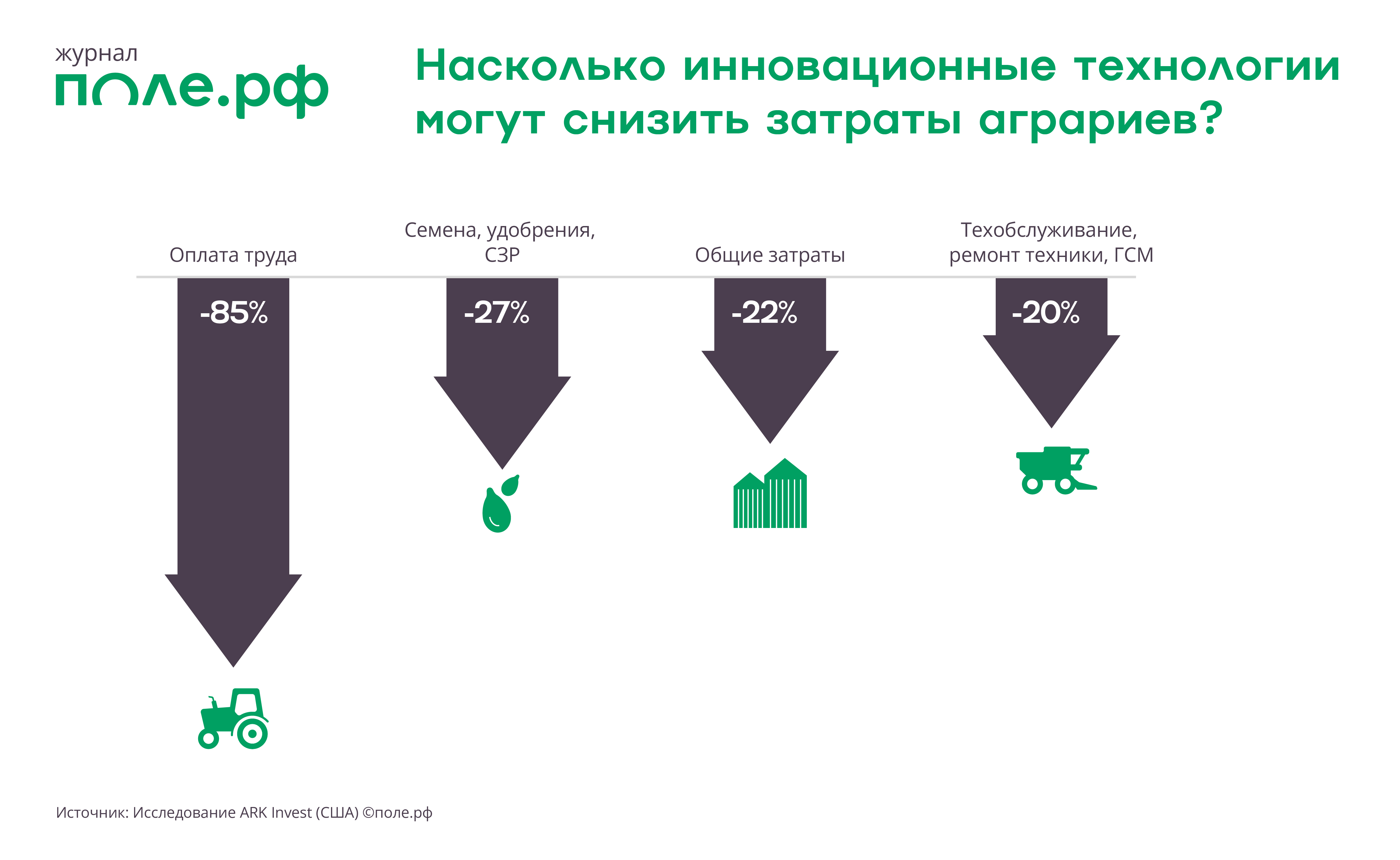Международная компания ARK Invest (США), занимающаяся инвестициями в инновационные сферы экономики, опубликовала исследование, в котором говорится, что искусственный интеллект и точное земледелие могут снизить затраты фермеров по всему миру на 22%.