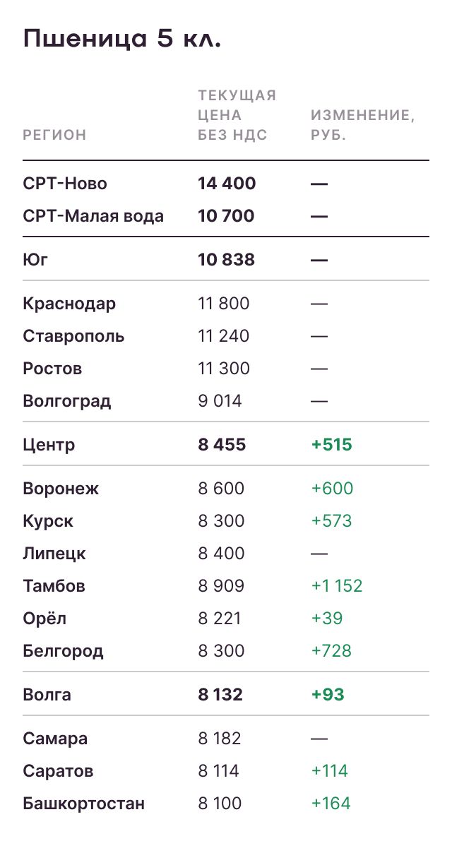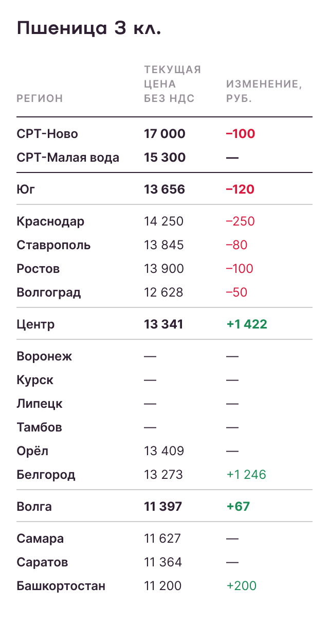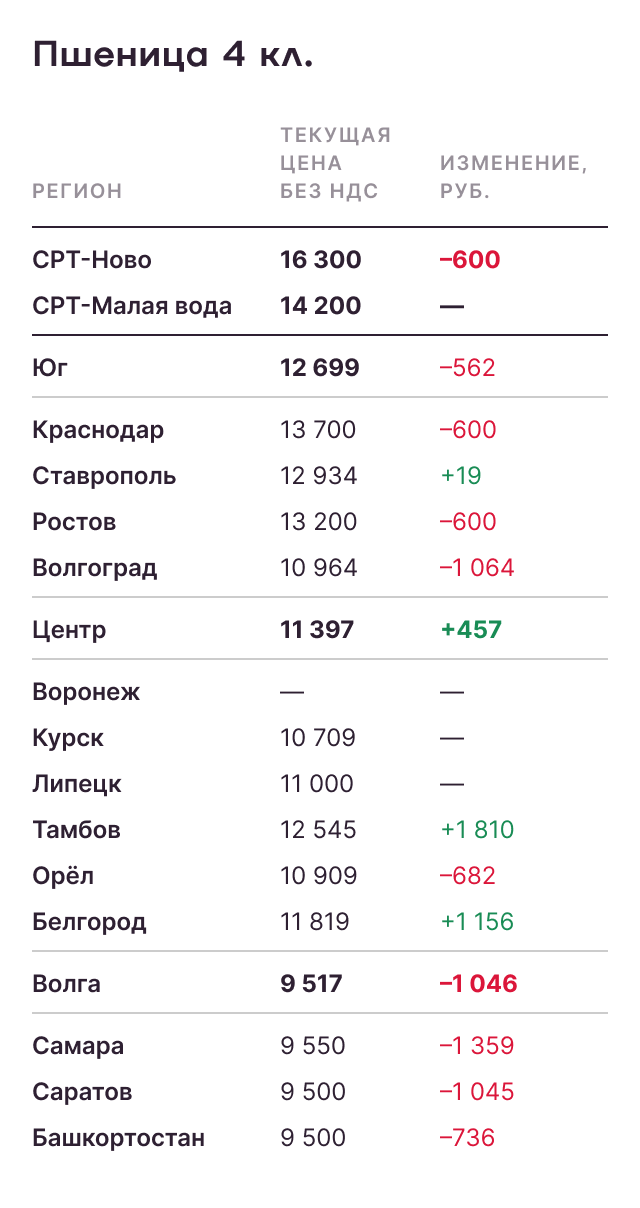 - Нехватка судов, очереди в портах, падение темпов экспорта привели к снижению цен экспортеров на ключевые позиции, в том числе пшеницу 4-го класса с протеином 12,5%;