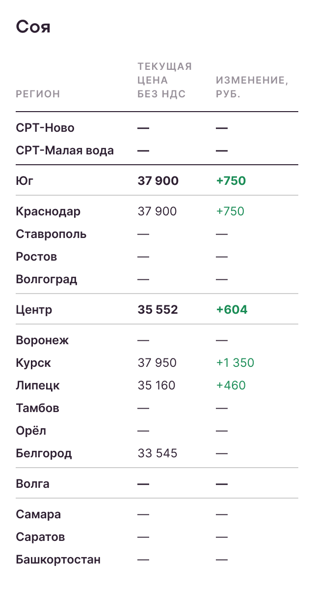 - Свободные объемы сои у аграриев европейской части России минимальны, что оказывает поддержку ценам.