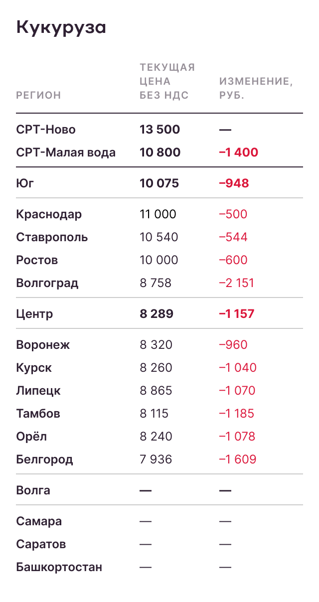 - Слабый спрос на российскую кукурузу на фоне более дешевого предложения из США и Латинской Америки.