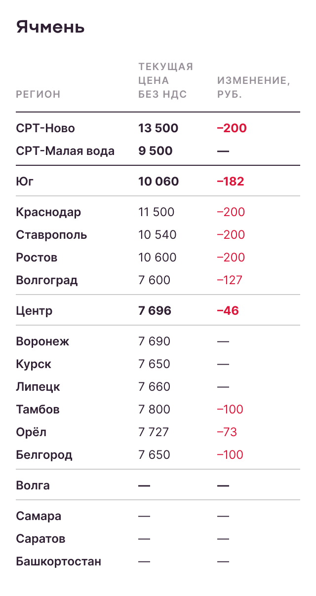 - Сезонная просадка импортного спроса после периода активной контрактации на старте сезона в июле-августе.