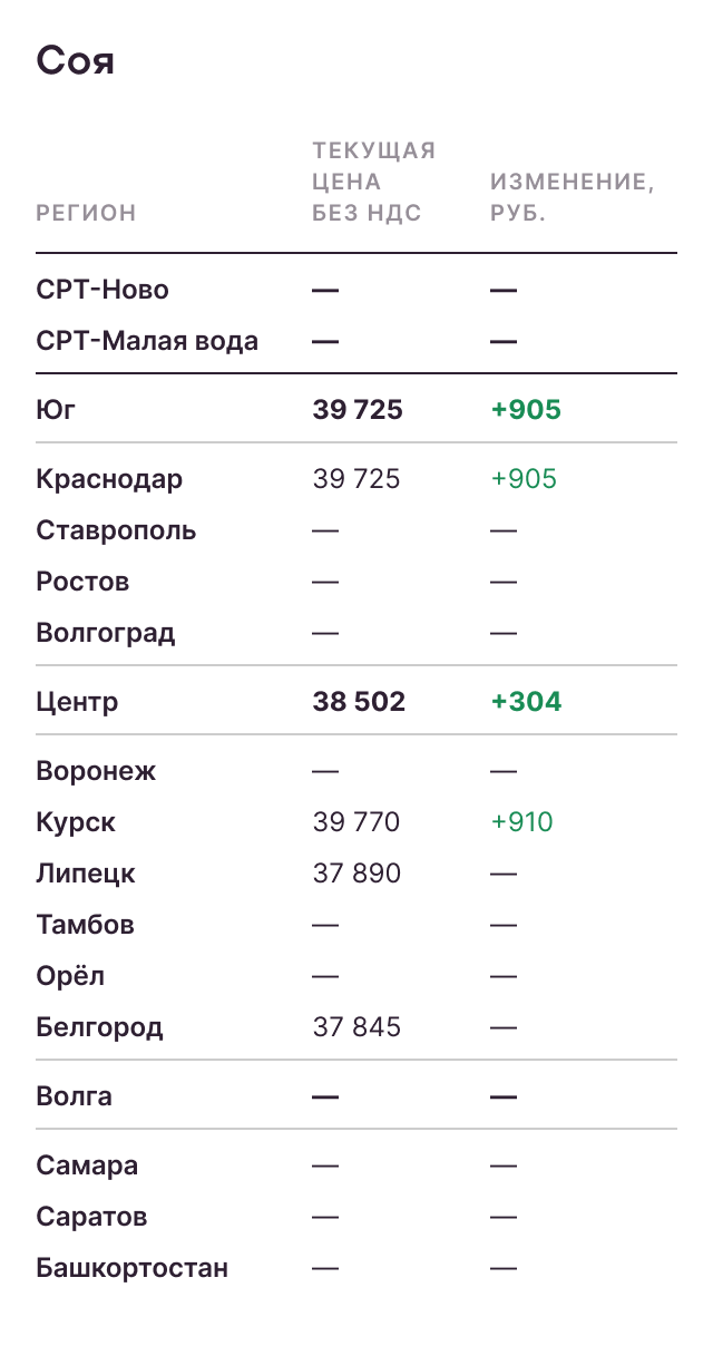 Цены на сою в РФ возросли вслед за рынком подсолнечника, равно как и соевое масло дорожает на фоне повышения цен на подсолнечное. Спрос остается на высоком уровне, заводы продолжают активно контрактовать новый урожай. Причин для разворота текущего тренда пока не наблюдается. Вероятна стабилизация цен в конце октября—начале ноября с последующим витком роста к Новому году.