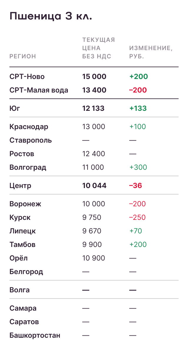 На фоне продолжающегося укрепления рубля к доллару предыдущие прогнозы на «незначительный рост» не оправдались. Цены в глубоководных портах (СРТ) остаются стабильными, что частично компенсируется понижением пошлины. Текущие параметры спроса и предложения на пшеницу в мире скорее указывают на боковой тренд (в перспективе ближайшего месяца), повышательные тенденции могут прийти не ранее конца января-февраля. На понижение может сыграть только курс, если его укрепление продолжится, что маловероятно.