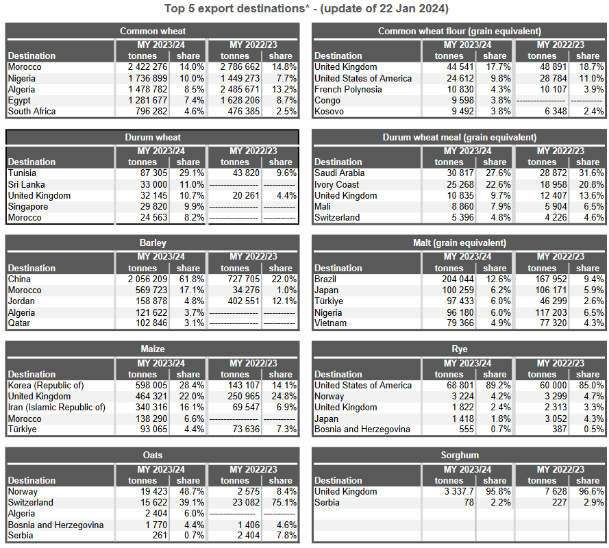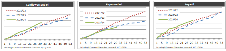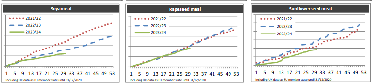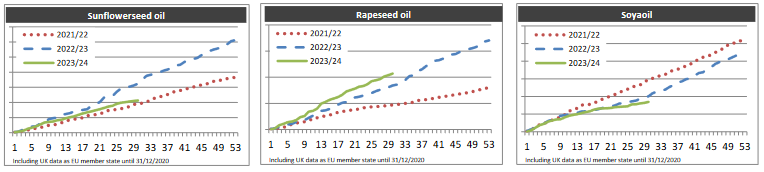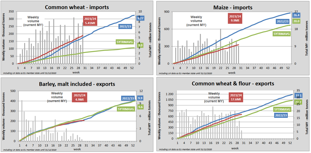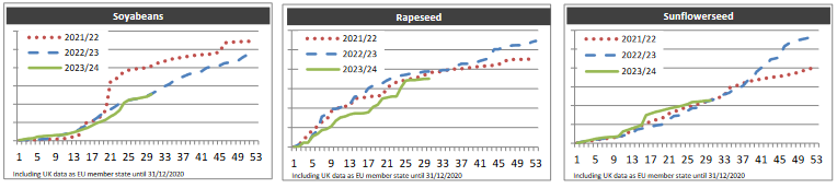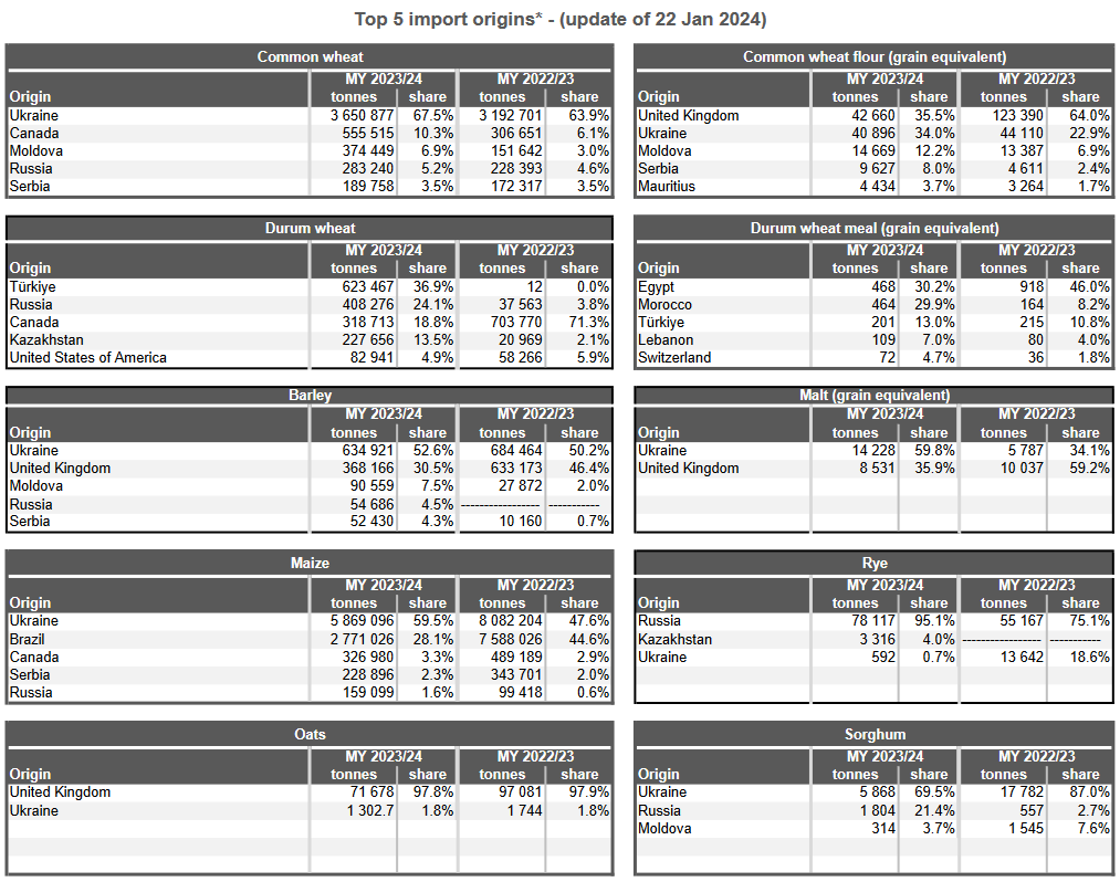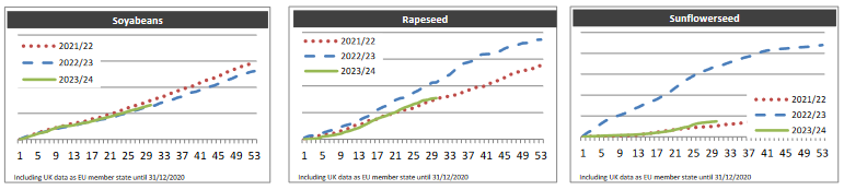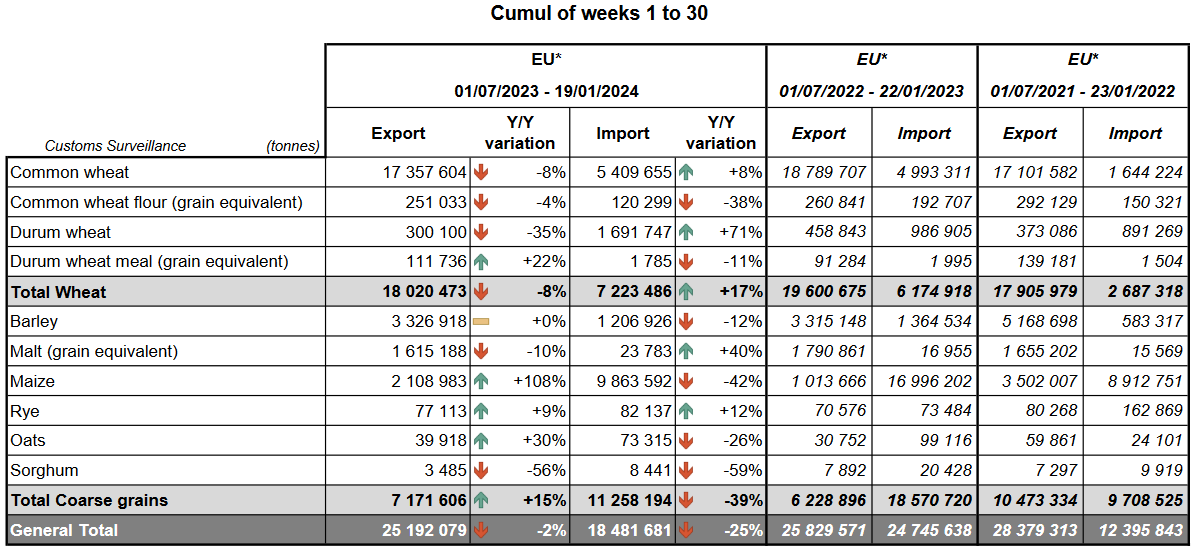ЕС. Импорт-экспорт зерновых, масличных, растительного масла, шрота на 19.01.24 г.