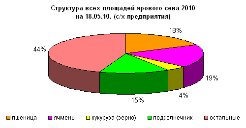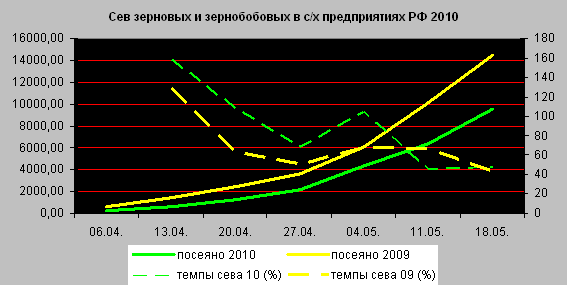 Подробные (по областям РФ) данные сева яровых культур и гибели озимых в сельхозпредприятиях на 18 мая 2010г. см. ПРЯМО СЕЙЧАС в разделе сайта ЗЕРНО Он-Лайн – ЗЕРНОСТАТ / Ход сева и уборки / Ход сева / Сев весна 2010