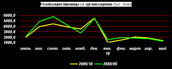 В мае 2010г. сельхозорганизации РФ, по данным Росстата, реализовали 1404,19 тыс. тонн пшеницы, что на 12,2% больше, чем в мае 2009г.