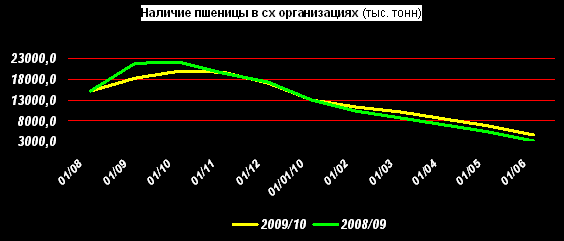 Запасы пшеницы в сельхозорганизациях на 01 июня 2010г. насчитывали, если верить Росстату, 4616,972 тыс. тонн. Это на 46,2%% больше, чем на 01 июня 2009г.