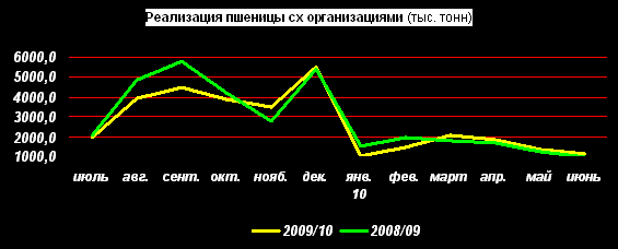 В июне 2010г. сельхозорганизации РФ, по данным Росстата, реализовали 1181,861 тыс. тонн пшеницы, что на 20,6% больше, чем в июне 2009г.