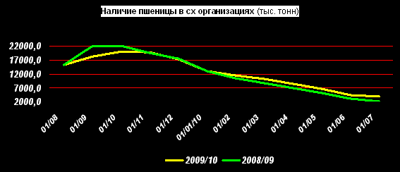 Запасы пшеницы в сельхозорганизациях на 01 июля 2010г., если верить Росстату, насчитывали 3944,396 тыс. тонн. Это на 83,5%% больше, чем на 01 июля 2009г.