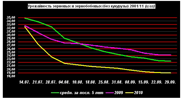 Подробные (по областям РФ) итоговые данные уборки урожая зерновых и зернобобовых культур, в том числе пшеницы, ячменя, рапса на 29 сентября 2010г. см. ПРЯМО СЕЙЧАС