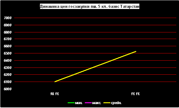 Пшеницы 5 класса было продано 86% от заявленных объемов или 23,532 тыс. тонн. Не нашлось покупателей на базисах Пензенской области и Ставропольского края. Диапазон максимальных и минимальных цен закупки составил 6000-6525 руб./тонна. Максимальная цена 6500 руб./тонн, показанная на базисе Татарстана, на 525 рублей превысила стартовую (04 февраля максимальное превышение было 100 руб./тонна).