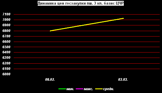 Центральное Черноземье лишь второй раз участвует в интервенционных торгах пшеницей 3 класса. Первый раз – 08 февраля, когда было выставлено и продано 1,35 тыс. тонн по максимальной (она же и минимальная) цене 6800 руб./тонна.