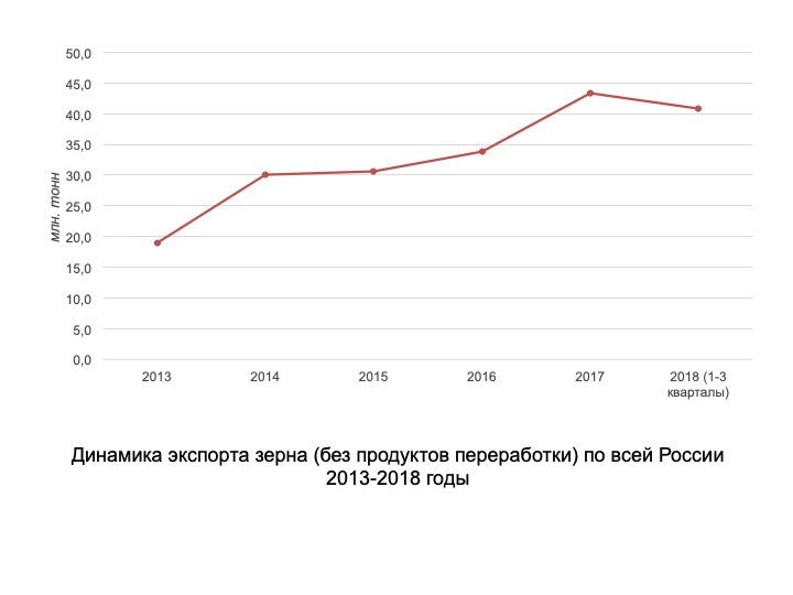 В России активно развивается аграрная отрасль. В 2016 году страна вышла на первое место в мире по экспорту пшеницы. В 2017 году в РФ собран рекордный за всю историю урожай зерновых — более 130 миллионов тонн. В том же году Россия впервые в новейшей истории вышла на второе место в мире по экспорту зерна (всех видов), обойдя Аргентину и Украину, уступив только США.