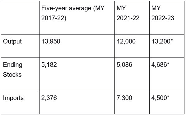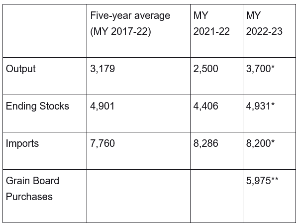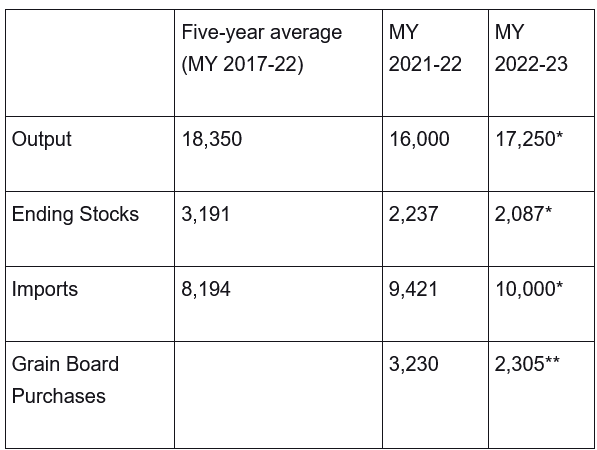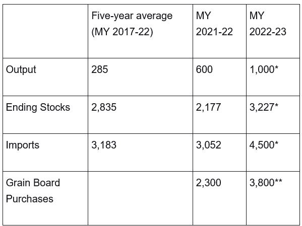 Министерство сельского хозяйства США недавно повысило свою оценку импорта Саудовской Аравии в 2022-23 МГ до 4,5 млн тонн, заявив, что крупные тендеры правительства показали, что оно наращивает запасы.